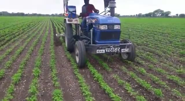 भितरवार: सोयाबीन की निराई गुड़ाई फार्मर के द्वारा ट्रैक्टर से
