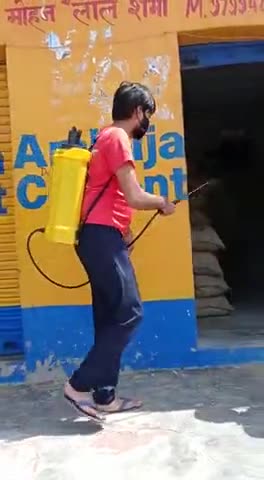 सोडियम हाइपोक्लोराइट का छिड़काव करते हुए