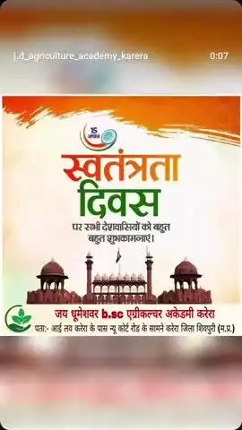 जय धूमेशवर b.sc एग्रीकल्चर अकेडमी की तरफ से आप सभी देशवासियों एवं प्रदेशवासियों को 15 अगस्त स्वतंत्रता दिवस की हार्दिक शुभकामनाएं🇮🇳🇮🇳❤️🙏