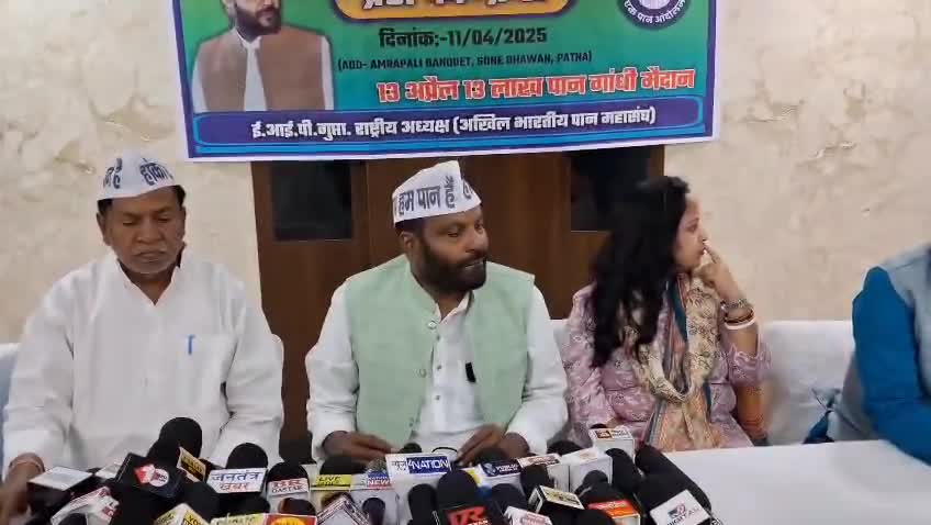 गांधी मैदान में 13 अप्रैल को होने वाले पान आंदोलन महारैली को लेकर पटना में आज प्रेस को संबोधित किया।