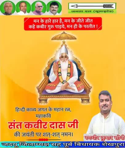 महान कवि, समाज सुधारक संत #कबीर_दास जी की जयंती के अवसर पर आप सभी को हार्दिक बधाई एवं शुभकामनाएं।