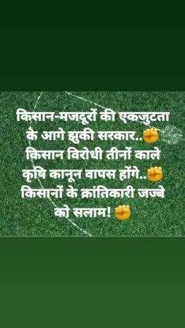 किसान-मजदूरों की एकजुटता के आगे झुकी सरकार..✊ किसान विरोधी तीनों काले कृषि कानून वापस होंगे..✊ किसानों के क्रांतिकारी जज