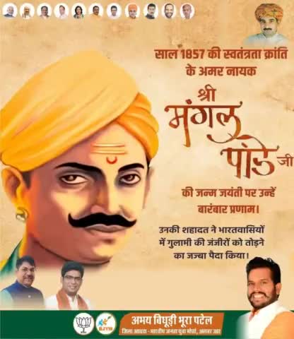 भारतीय स्वतंत्रता संग्राम के अग्रदूत एवं 1857 की क्रांति के नायक अमर शहीद मंगल पांडे की जयंती पर शत्-शत् नमन