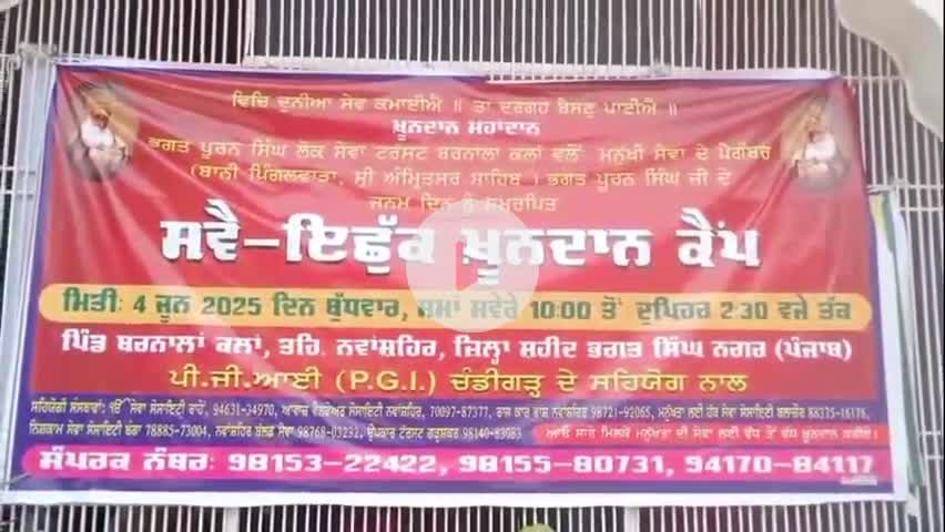 ਨਵਾਂਸ਼ਹਿਰ ਬਰਨਾਲਾ ਕਲਾਂ ਵਿਖੇ ਭਗਤ ਪੂਰਨ ਸਿੰਘ ਦੀ ਯਾਦ ਚ ਸਵੈ-ਇੱਛਕ ਖੂਨਦਾਨ ਕੈਪ ਲਗਾਇਆ ਇਸ ਮੌਕੇ ਕਈ ਖੂਨਦਾਨੀਆਂ ਦੇ ਵੱਲੋਂ ਆਪਣਾ ਖੂਨਦਾਨ ਕੀਤਾ ਗਿਆ ਇਸ ਮੌਕੇ ਸੰਸਥਾ ਨੇ ਕਿਹਾ ਹੈ ਕਿ ਸਾਨੂੰ ਸਾਰਿਆਂ ਨੂੰ ਖੂਨਦਾਨ ਕਰਨਾ ਚਾਹੀਦਾ ਹੈ ਖ਼ੂਨਦਾਨ ਇੱਕ ਮਹਾਦਾਨ ਹੁੰਦਾ ਹੈ। ਜਿਸ ਨਾਲ ਕਿਸੇ ਲੋੜਵੰਦ ਦੀ ਜ਼ਿੰਦਗੀ ਬਚਾਈ ਜਾ ਸਕਦੀ ਹੈ।