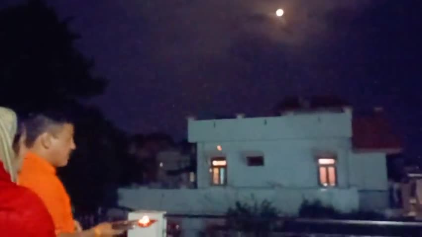 #आज परिवार के साथ शरद पूर्णिमा में चन्द्रमा की आरती करते