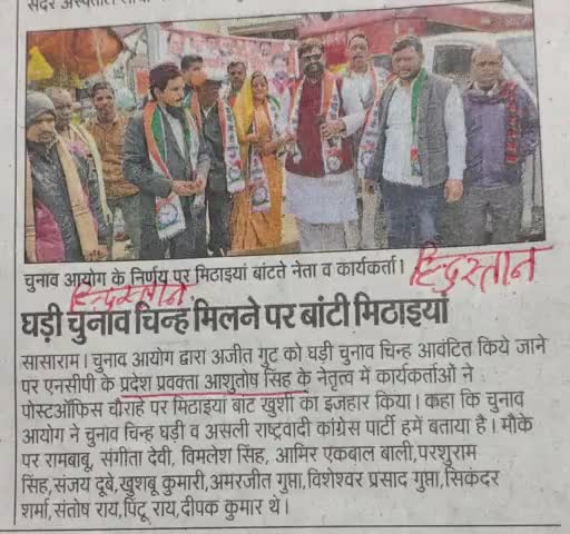 चुनाव आयोगने अजीत पवार कोही एनसीपी घड़ी सेंबुल दिया,खुशिमे मिठाई बातते,आशुतोष सिंह उपाध्यक्ष,मुख्य प्रवक्ता बिहार प्रदेश