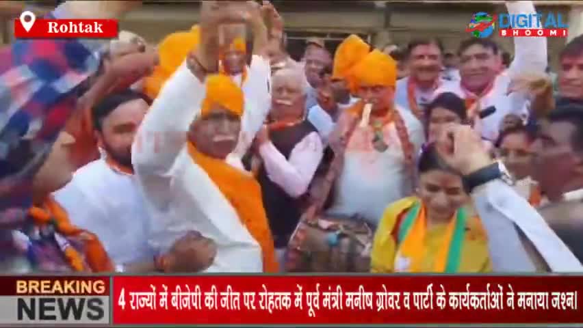 4 राज्यों में बीजेपी की जीत पर रोहतक में पूर्व मंत्री मनीष ग्रोवर व पार्टी के कार्यकर्ताओं ने मनाया जश्न। #Rohtak #Harya