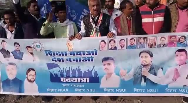 हाजीपुर:-एनएसयूआई के द्वारा निकाला गया शिक्षा बचाओ देश बचाओ पदयात्रा के स्वागत से पहले साथियों के साथ प्रदर्शन करते हुए।