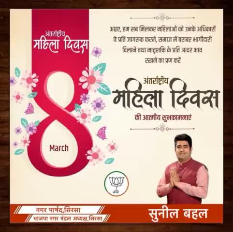 आइए हम सब मिलकर महिलाओं को उनके अधिकारों के प्रति जागरूक करने,समाज में बराबर भागीदारी दिलाने तथा मातृशक्ति के प्रति आदर भाव रखने का प्रण करें। अंतर्राष्ट्रीय महिला दिवस की आत्मयी शुभकामनाएं।