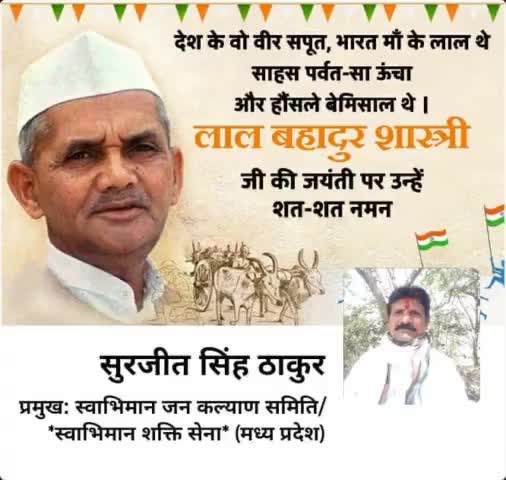 भारत के पूर्व प्रधानमंत्री लाल बहादुर शास्त्री जी की जयंती पर उन्हें ब्रह्म श्रद्धांजलि एवं सादर शत-शत नमन