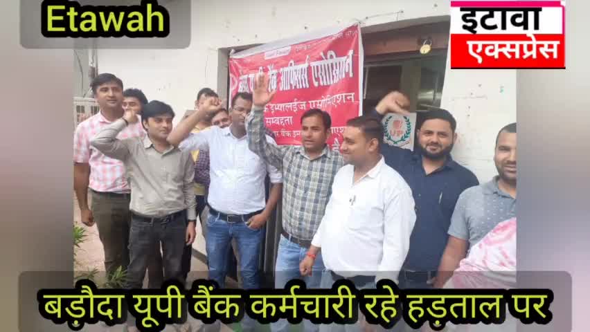 बड़ौदा यूपी बैंक में नई भर्ती की मांग को लेकर बैंक कर्मचारी हड़ताल रहे