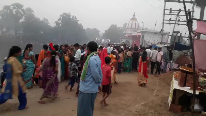 चंडी थाना क्षेत्र के कचहरिया गाँव में छठ पुजा में लगी भीड़ |