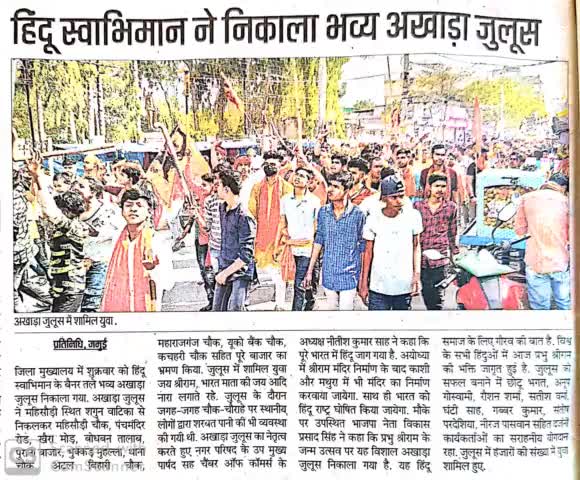भगवान श्रीराम के जन्मोत्सव पर पूरा जमुई हुआ भगवामय -विकास 10 हज़ार से अधिक रामभक्त हुए शोभायात्रा में शामिल ! साभार :- हिंदुस्तान, जमुई !