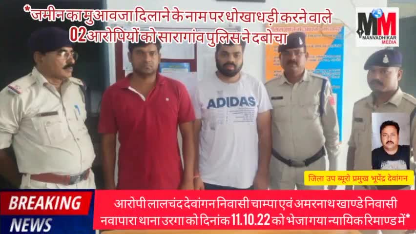 चांपा: जमीन का मुआवजा दिलाने के नाम पर धोखाधड़ी करने वाले 2 आरोपियों को सारागांव पुलिस ने किया गिरफ्तार https://youtu.be/HxIdev