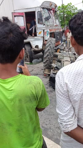 बरूराज मोतीपुर: ट्रैक्टर को अनियंत्रित ट्रक ने दो भागो मे बाटा, चालक को चोटे आई