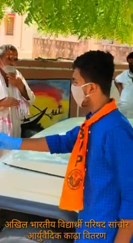 अखिल भारतीय विद्यार्थी परिषद इकाई सांचोर ने आमजन को पिलाया आर्युवैदिक काढ़ा।