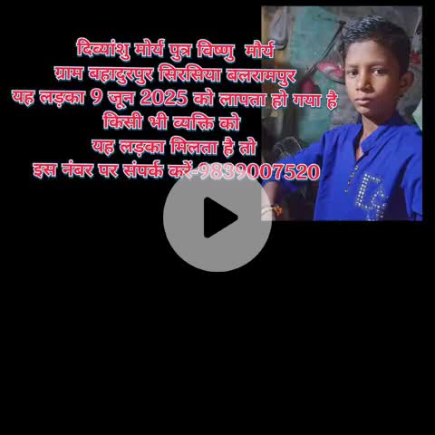 नाम दिव्यांशु कुमार मोर्य पुत्र विष्णु प्रताप मौर्य ग्राम बहादुरपुर सिरसिया बलरामपुर कृपया दिए गए नंबर पर अवगत जरूर करें