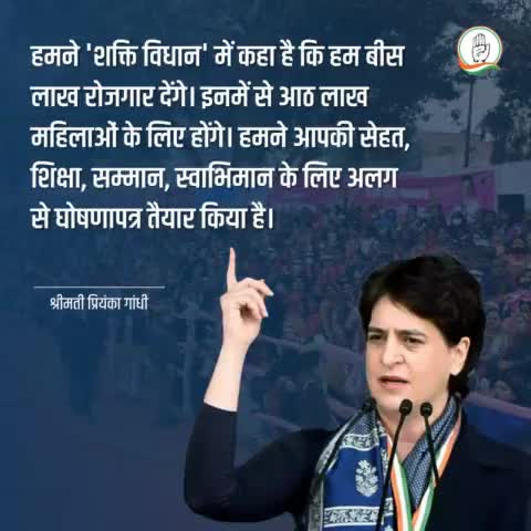 #शक्ति_विधान यूपी चुनाव मे कांग्रेस का ऐलान सरकार बनने पर 20लाख युवाओ को रोजगार जय हिंद जय कांग्रेस ।।