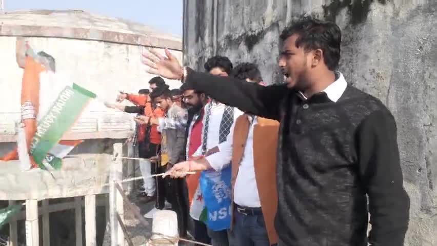राहुल राय और प्रदीप जैन को नजरबंद करने पर एनएसयूआई ने किया पानी की टंकी पर चढ़कर प्रदर्शन।