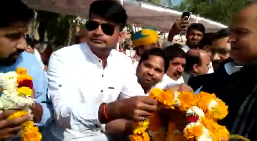 अजमेर: अजमेर राजस्थान के मुख्यमंत्री के उपमुख्यमंत्री का अजमेर पहुंचने पर पुलिस लाइन हेलीपैड पर कांग्रेस कार्यकर्ता स्वागत करते हुए