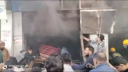 संभल : फर्नीचर के शोरूम में अज्ञात कारणों से लगी आग। सूचना पर दमकल की गाड़ी मौके पर पहुंची आग पर काबू पाने का प्रयास किया जा रहा है। हादसा बहजोई नगर के पुराना डाकखाना रोड#
