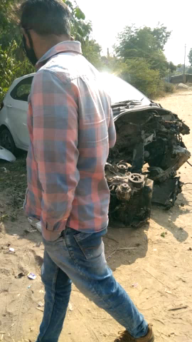 रॉबर्ट्सगंज: सलखन:रेलवे पुल से टकराई कार बाल बाल बचे कार सवार।#tatatiago@tatacars#exidents
