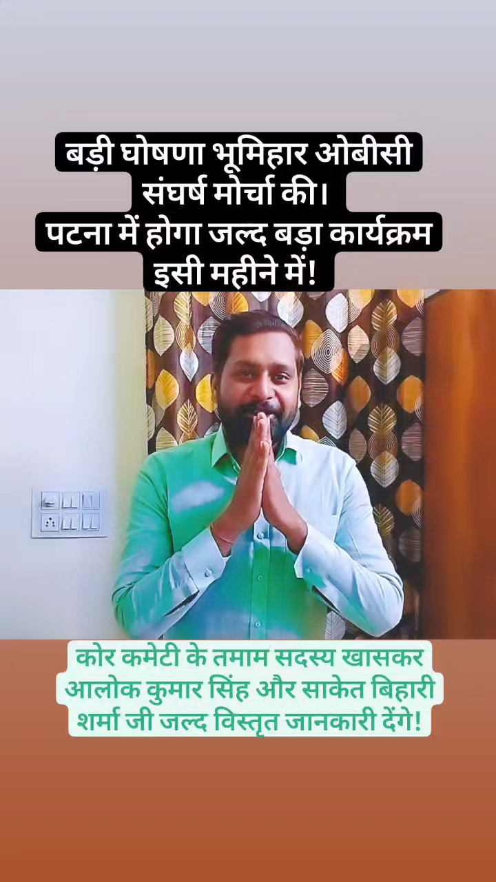 बड़ी घोषणा भूमिहार ओबीसी संघर्ष मोर्चा की। पटना में होगा जल्द बड़ा कार्यक्रम इसी महीने में! #bhumiharwantsobcstatus