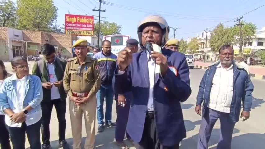 राष्ट्रीय सड़क सुरक्षा माह के अन्तर्गत सड़क सुरक्षा अभियान का आयोजन यातायात नियमों का पालन करें हेल्मेट मैन फिरोज़ खान