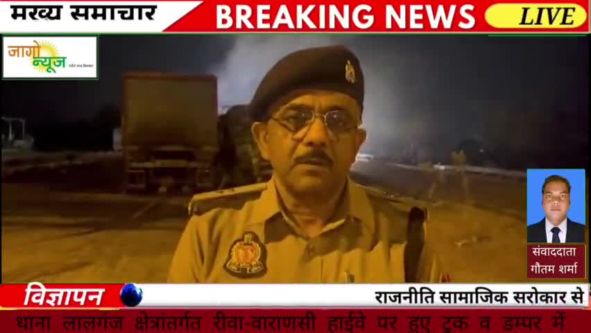 थाना लालगंज क्षेत्रांतर्गत रीवा-वाराणसी हाईवे पर हुए ट्रक व डम्पर में टक्कर से लगी आग,पुलिस के उच्चाधिकारी,थाना लालगंज