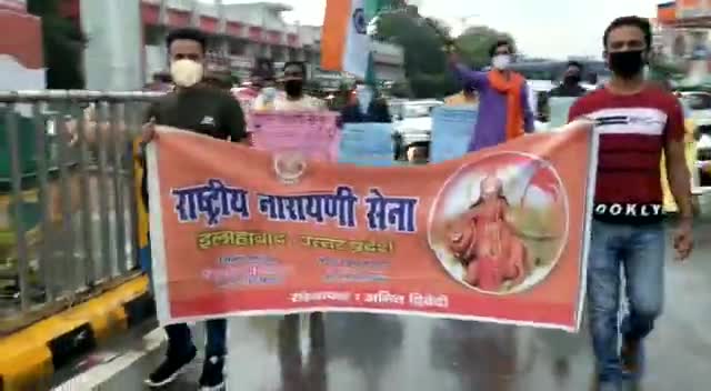 चाइना के विरोध में राष्ट्रीय नारायणी सेना मैदान में आज प्रयागराज के सुभाष चौराहे पर पदाधिकारियों द्वारा विरोध प्रदर्शन .