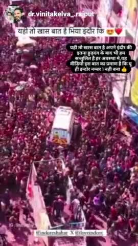 इंदौर: #इंदौर लाखों की भीड़ रंग पंचमी का त्यौहार एंबुलेंस को दिया रास्ता जय हिंद@