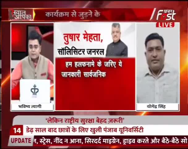 खबर fast tv चैनल द्वारा आयोजित live कार्यक्रम " सवाल-आपका" प्राइम टाइम डिबेट कार्यक्रम में शिरकत की। योगेन्द्र सिंह