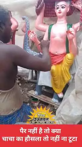 पैर नहीं है तो क्या चाचा का हौसला तो नही ना टूटा है! आज भी अपने कला से भगवान विश्वकर्मा की मुर्ति बना रहे हैं।
