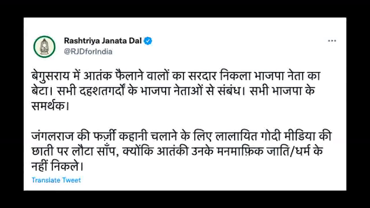बेगूसराय गोलीकांड का सरगना बीजेपी के नेता का बेटा है: आरजेडी का दावा #बेगूसराय_गोलीकांड #अपराध #राजनीति