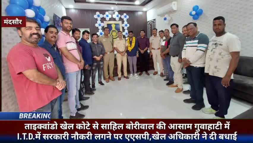 ताइक्वांडो खेल कोटे से साहिल बोरीवाल की आसाम गुवाहाटी में I.T.D.में सरकारी नौकरी लगने पर एएसपी,खेल अधिकारी ने दी बधाई