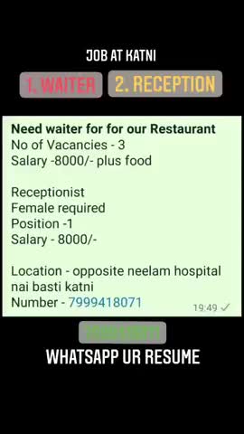 Job at Katni check our youtube "jobsupdate4u"