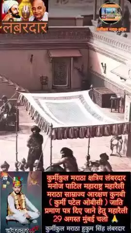 कुर्मीकुल मराठा क्षत्रिय लंबरदार मनोज पाटिल महारैली मराठा साम्राज्य आरक्षण 29 अगस्त मुंबई चलो 🙏