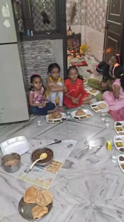 आज दिल्ली में मेरे घर पर नवमी पर्व बड़े श्रद्धाभाव से मनाया गया। सुबह से ही भक्ति का वातावरण था।नवमी के पावन अवसर पर मैंने माँ दुर्गा के स्वरूप मानी जाने वाली छोटी-छोटी कन्याओं को घर बुलाया। और उनके हलवा पुरी चना सब्जी का भोजन कराया जय मां