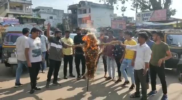 मध्यप्रदेश के नीमच के सिंगरौली में आदिवासी युवक कन्हैयालाल भील पर बर्बरता पूर्वक मारपीट एवं पिकअप वाहन में बांध कर घसीटा गया जिससे उसकी म्रत्यु हो गयी के विरोध में होशंगाबाद ज़िला युवक कांग्रेस ने राज्य सरकार का किया पुतला दहन।।