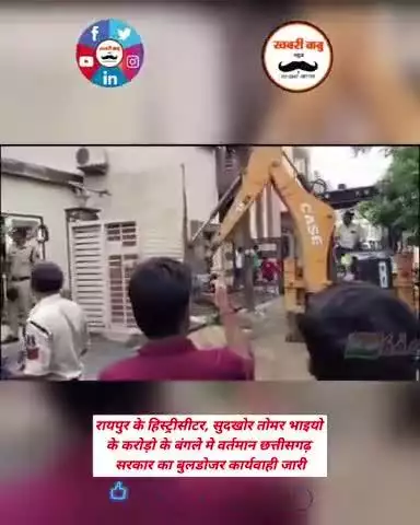 रायपुर के हिस्ट्रीसीटर, सुदखोर तोमर भाइयो के करोड़ो के बंगले मे वर्तमान छत्तीसगढ़ सरकार का बुलडोज़र कार्यवाही जारी