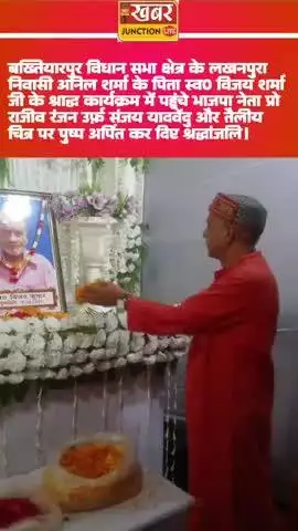 #बख्तियारपुर विधान सभा क्षेत्र के लखनपुरा निवासी अनिल शर्मा के पिता स्व0 विजय शर्मा जी के श्राद्ध कार्यक्रम में पहुंचे भाजपा नेता प्रो राजीव रंजन उर्फ़ संजय यादवेंदु और तैलीय चित्र पर पुष्प अर्पित कर दिए श्रद्धांजलि।