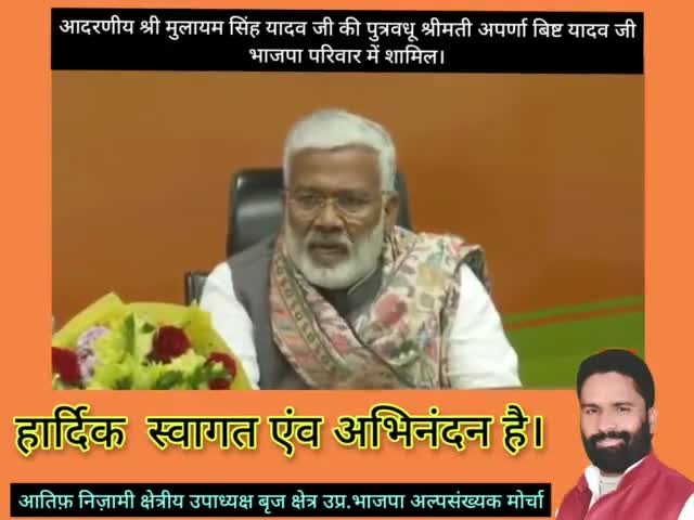 आज भाजपा परिवार में शामिल हुई माननीय मुलायम सिंह यादव जी की पुत्रवधू श्रीमती अपर्णा यादव जी भाजपा को उनके आने से मिलेगी मज़बूती।