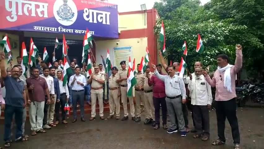 खालवा: आजादी के अमृत महोत्सव के तहत थाना खालवा द्वारा निकाली गई तिरंगा यात्रा