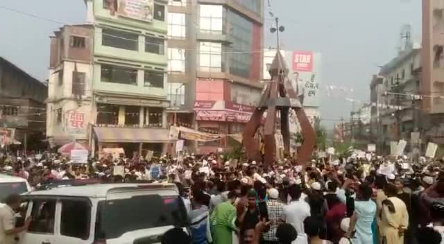 कटिहार: गुस्ताख ए रसूल के खिलाफ नारेबाजी करते कटिहार शहीद चौक के समीप