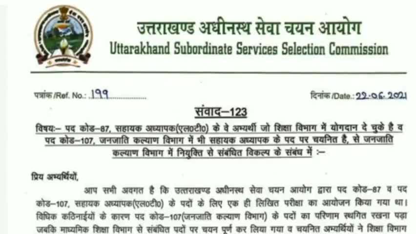 चमोली: एलटी परीक्षा 2017 का एक और परिणाम जारी, जनजाति कल्याण विभाग के लिए निकली नई चयन लिस्ट# #LT #merit_list