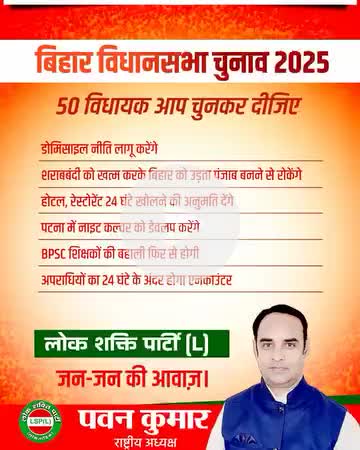 50 विधायक दीजिए, हम बिहार को विकास के रास्ते पर ले जाएंगे। वादे नहीं, अब इरादे चाहिए। #BiharElections2025 #LokShaktiPart