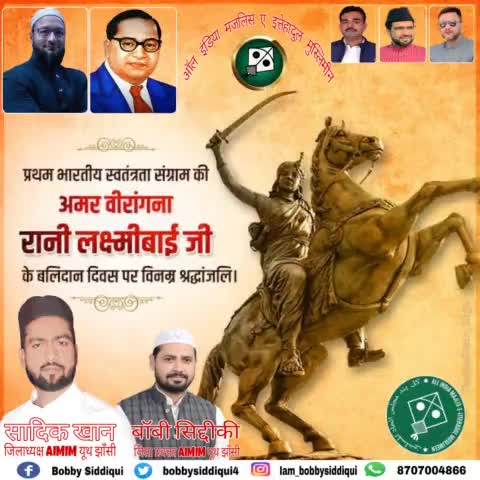 ऑल इंडिया मजलिस-ए-इत्तेहादुल मुस्लिमीन की ओर से अमर वीरांगना #रानी_लक्ष्मीबाई जी के बलिदान दिवस पर विनम्र श्रद्धांजलि