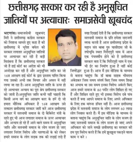 छत्तीसगढ़ सरकार कर रही है अनुसूचित जातियों पर अत्याचार