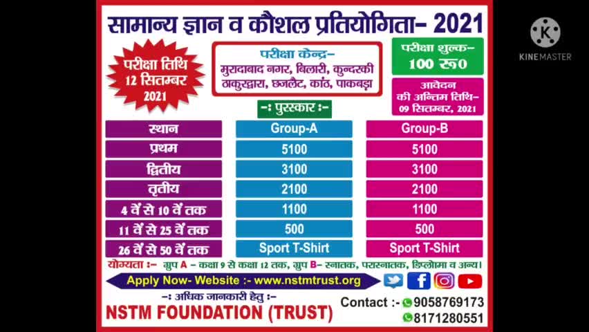 मुरादाबाद: सामान्यज्ञान व कौशल प्रतियोगिता -2021 Registration Open