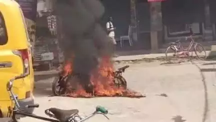 बनमनखी:मंगलवार को बनमनखी स्थित कैनरा बैंक के समीप खड़ी एक बाइक में अचानक आग लग जाने से अफरा-तफरी मच गई। बताया जाता है कि शॉट सर्किट के कारण यह घटना घटी। सूचना मिलते ही अग्निशमन दल मौके पर पहुंचा और कड़ी मशक्कत के बाद आग पर काबू पाया। तब तक बाइक पूरी तरह जल चुकी थी।पीड़ित वाहन मालिक की पहचान सहरसा जिले के प्रदीप कुमार बताए जा रहे हैं।
